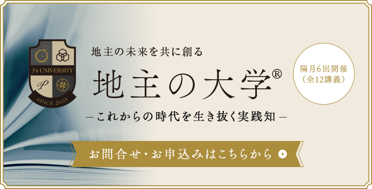 そんな地主の課題を解決するのが「地主の大学」です。「地主の大学」は、あなたを真の経営者へと導きます。